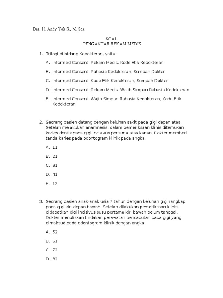 Contoh soal ukom rekam medis. We did not find results for: Maybe you would like to learn more about one of these? Check spelling or type a new query.
